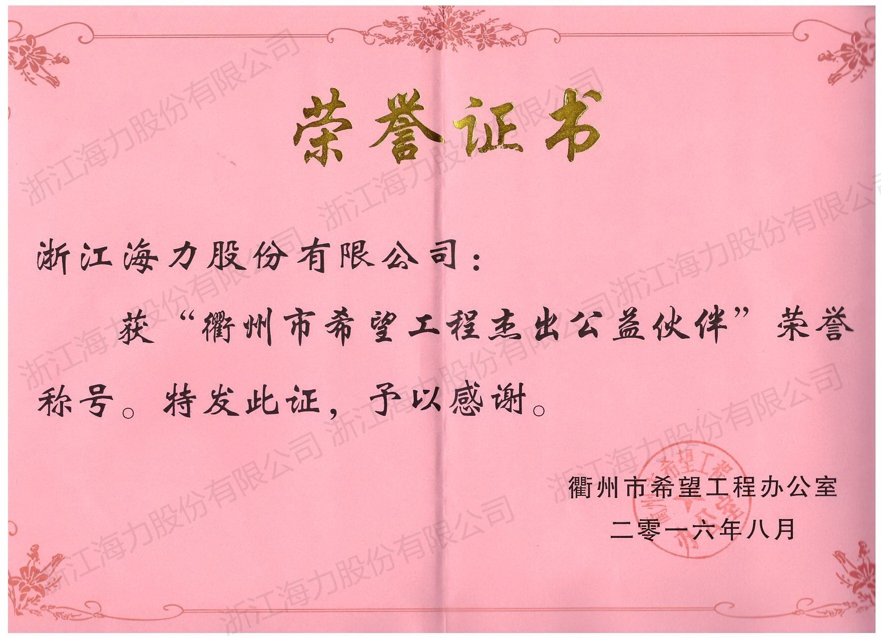 衢州市希望工程杰出公...