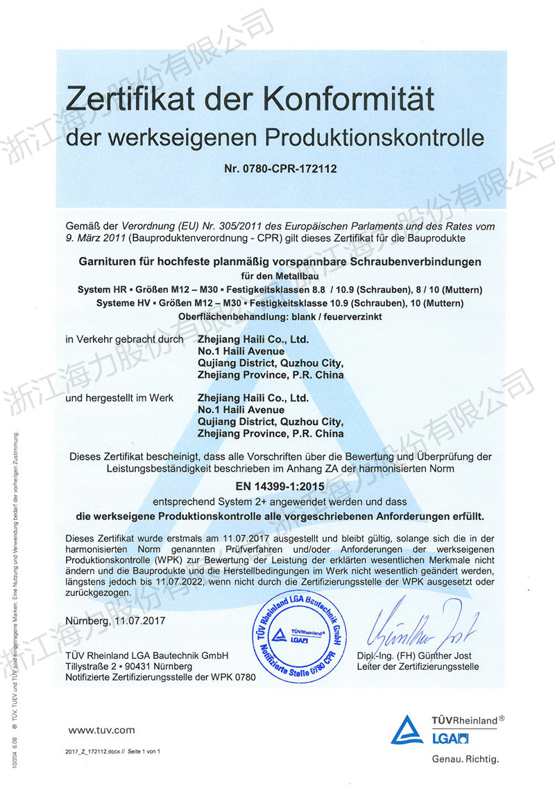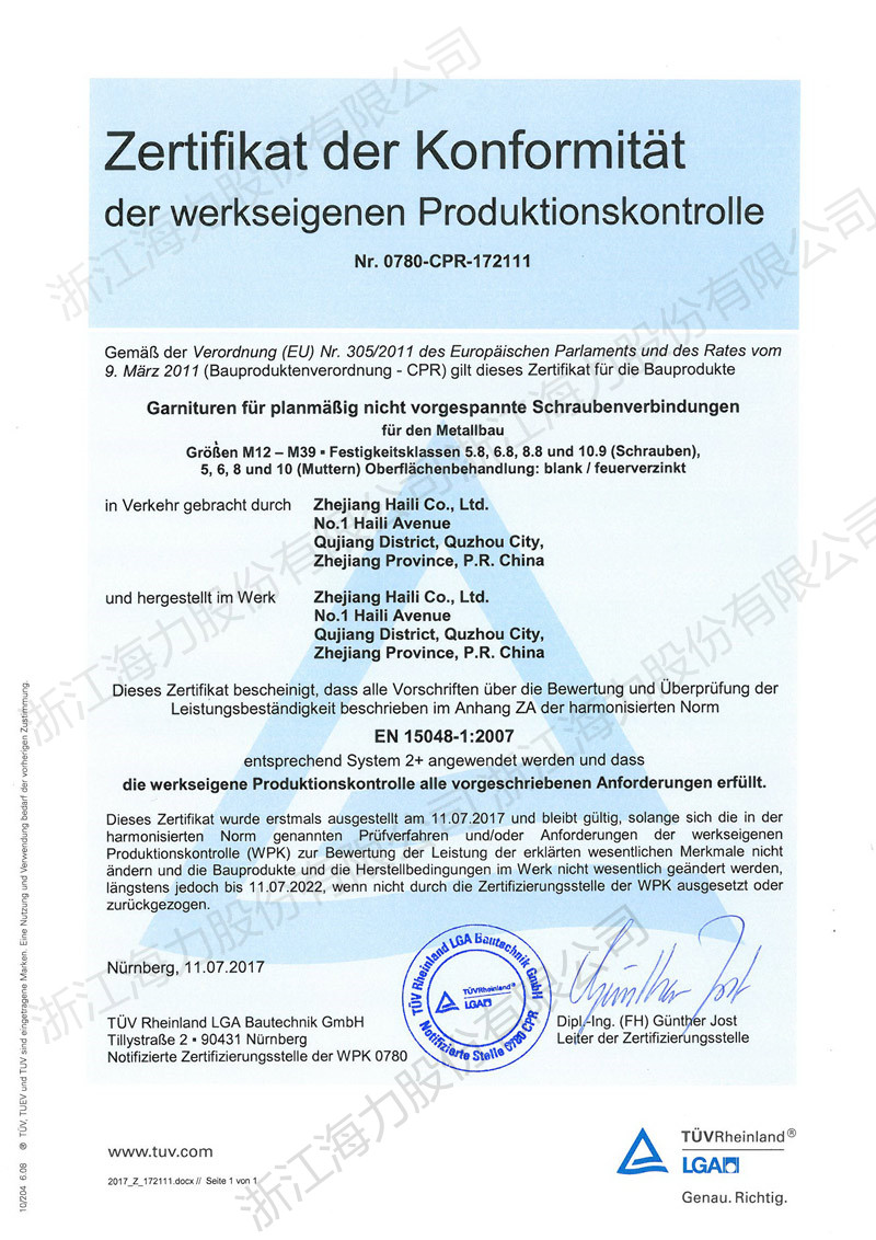 EN15048证书
