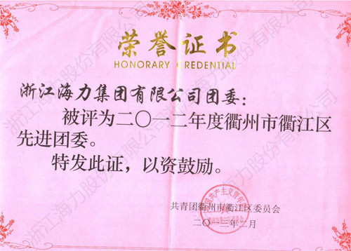 2012年团委荣誉证书