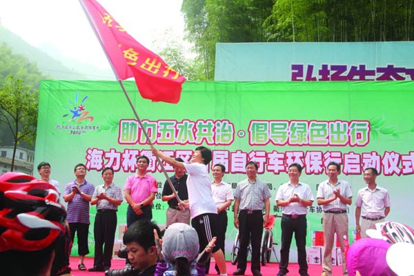 本次活动由区委宣传部、区体育局、区风景旅游局、区总工会、区体育总会主办,浙江海力集团有限公司冠名,黄坛口乡人民政府、区自行车协会(筹)协办。开展以“助力五水共治·倡导绿色出行”为主题的绿色骑游活动,是积极响应市委“奔跑起来吧,我的衢州!”行动号召,把“五水共治”作为我区党的群众路线教育实践活动的重要载体,转作风、抓落实的一次具体行动。阮孝林 叶强/摄 叶志红/文