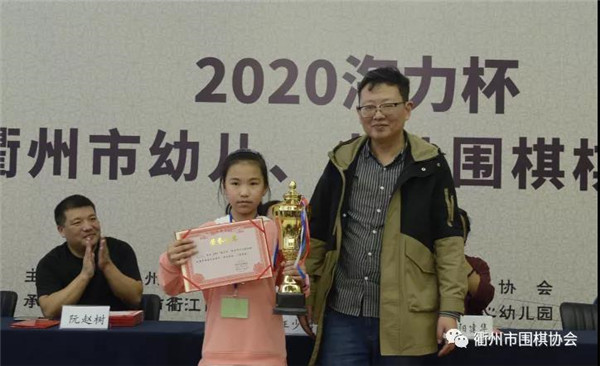 祝晨珂获得 2020“海力杯”衢州市少儿围棋棋王赛(乙组)“最佳女棋手”称号。